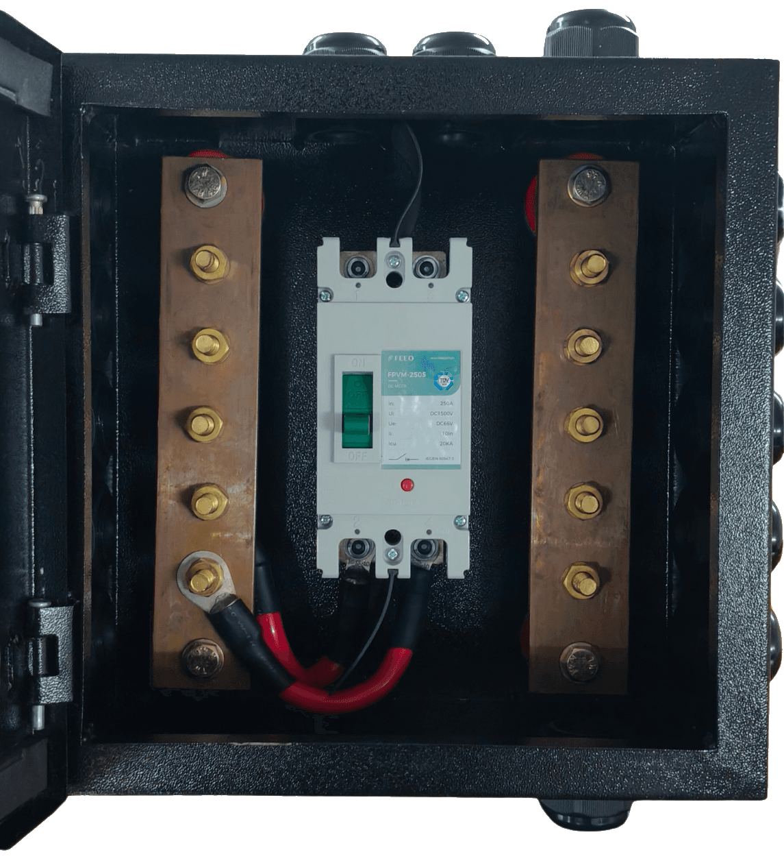 Built with pure copper busbars and a 250A / 550V DC MCCB, this unit offers superior conductivity, minimal power loss, and long-term durability — ideal for both industrial and renewable energy setups.
